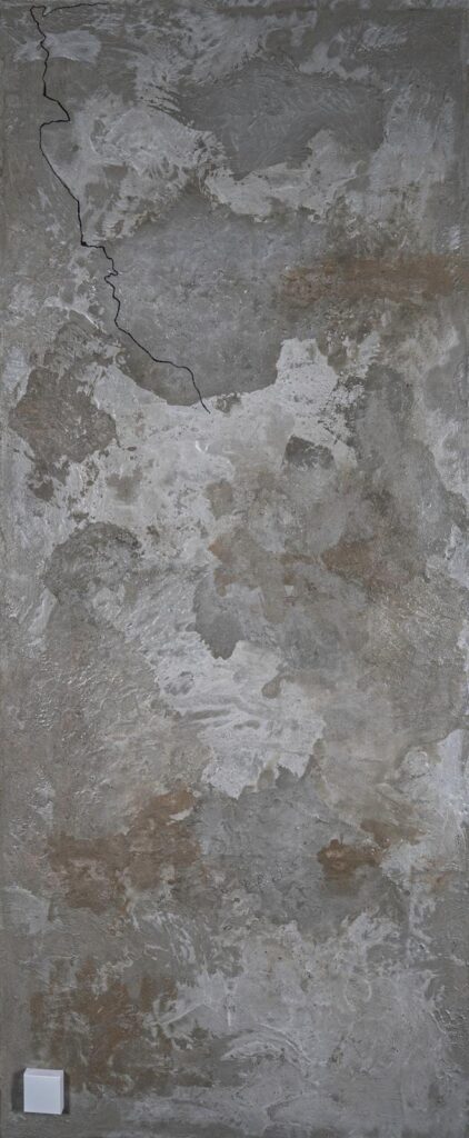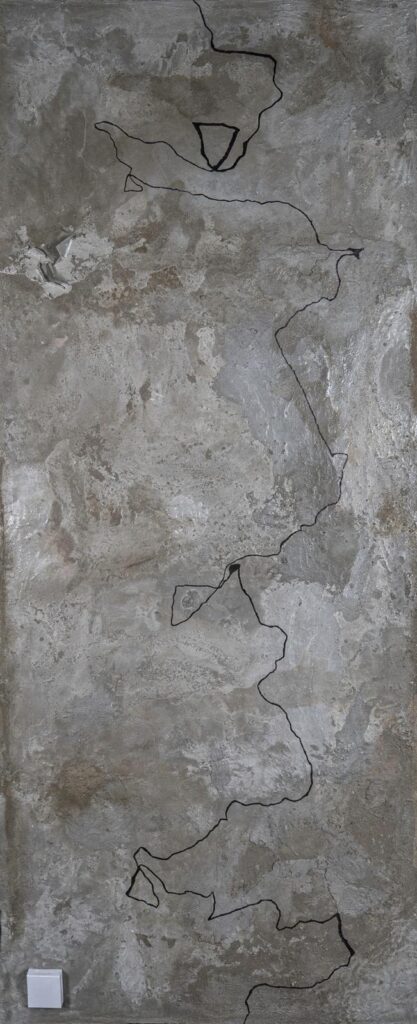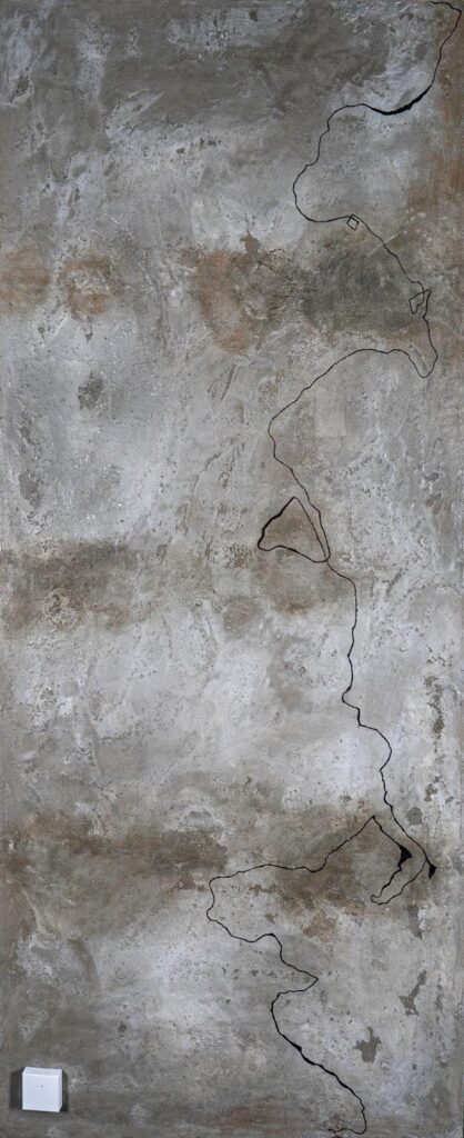 The fractured line that time draws upon the wall, in an eternal dialogue.